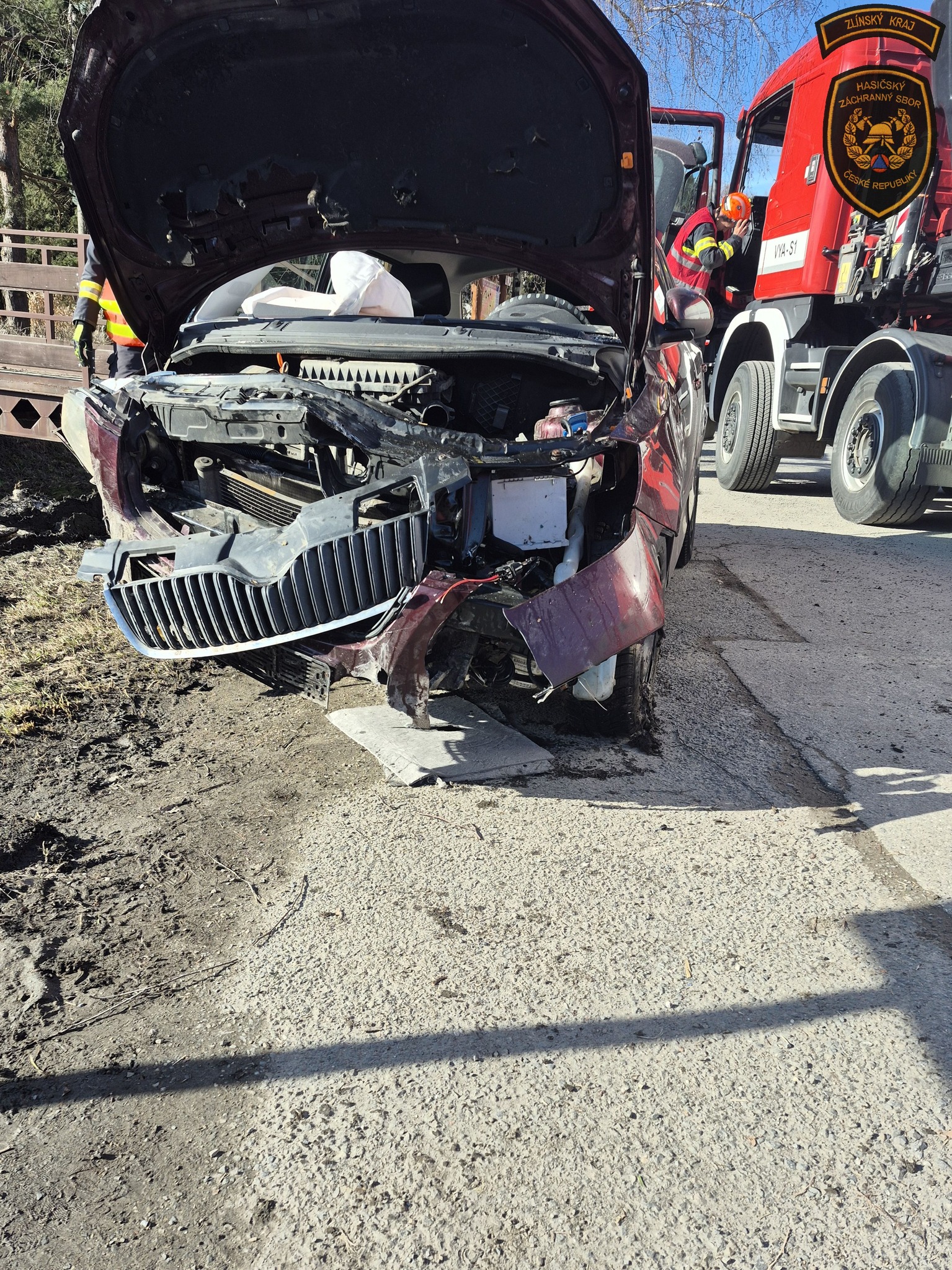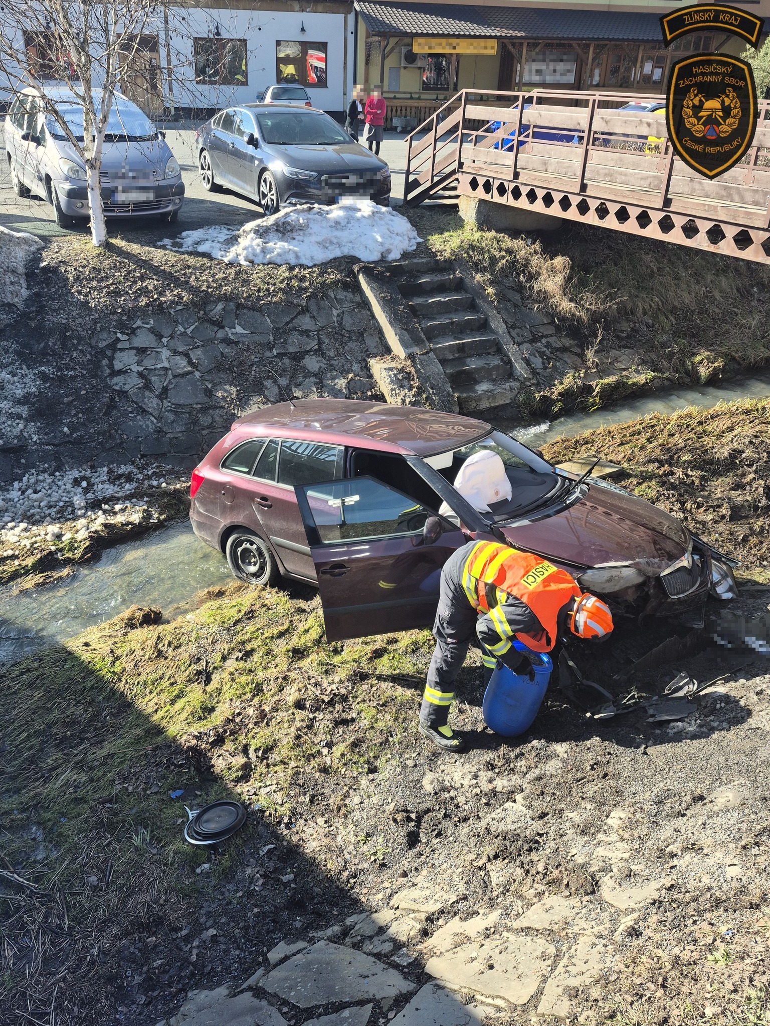 V Prlově skončilo osobní vozidlo v korytě potoka. Foto: HZS ZK