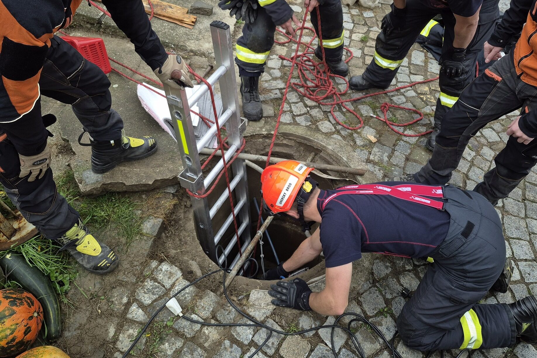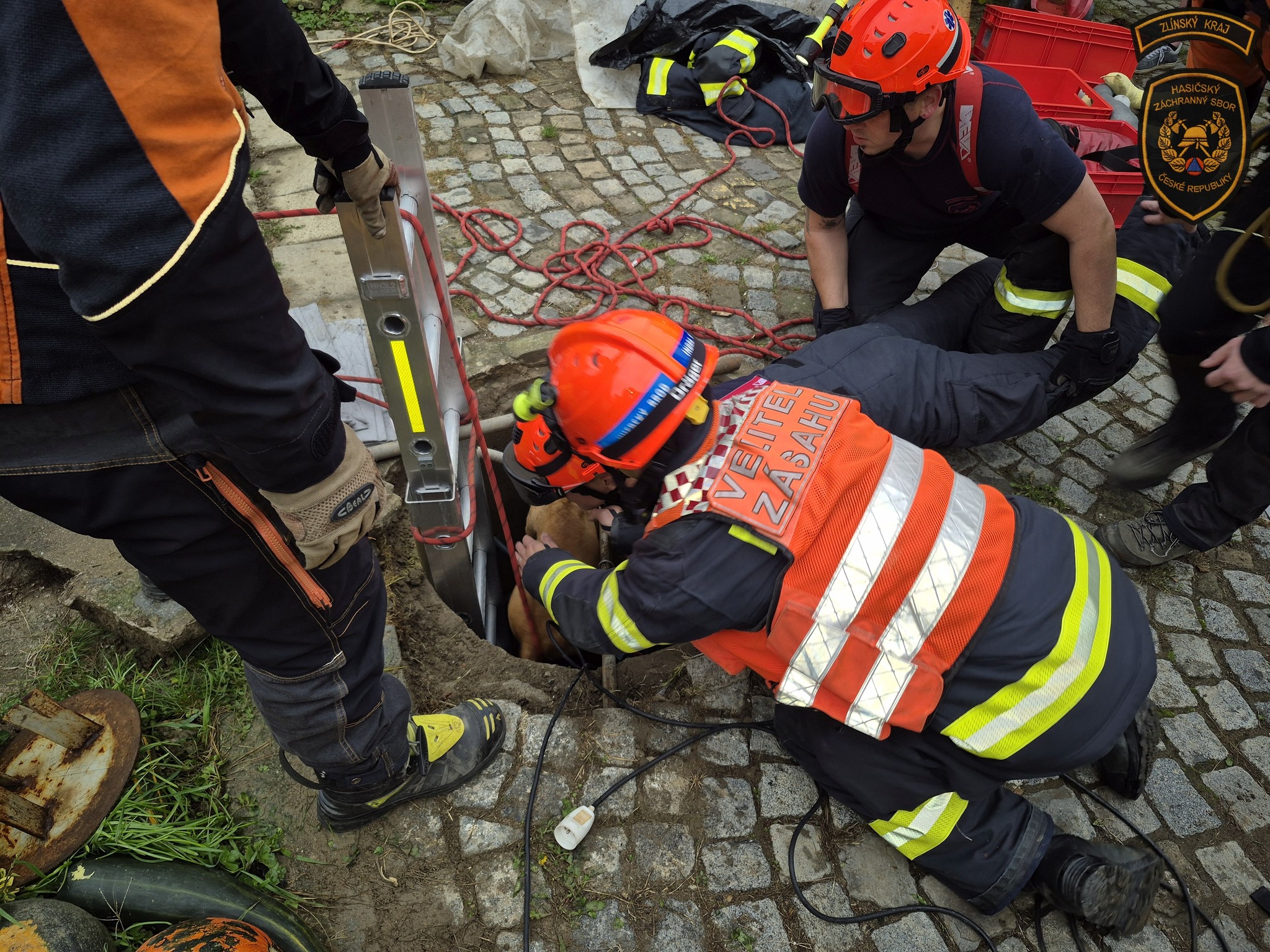 Hasiči zachraňovali psa z desetimetrové studny. Foto: HZS ZK