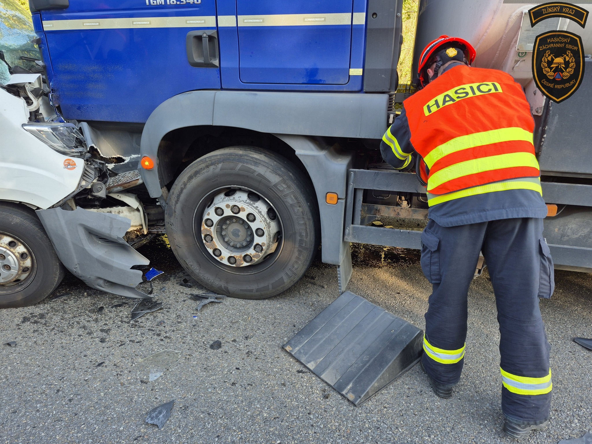 Ve Starém Městě se srazila dodávka s cisternou převážející naftu. Foto: HZS ZK