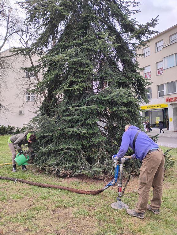 Fotogalerie - Vegetace v parku Komenského prochází léčebnou kúrou. Pomáhají půdní injektáže i další opatření