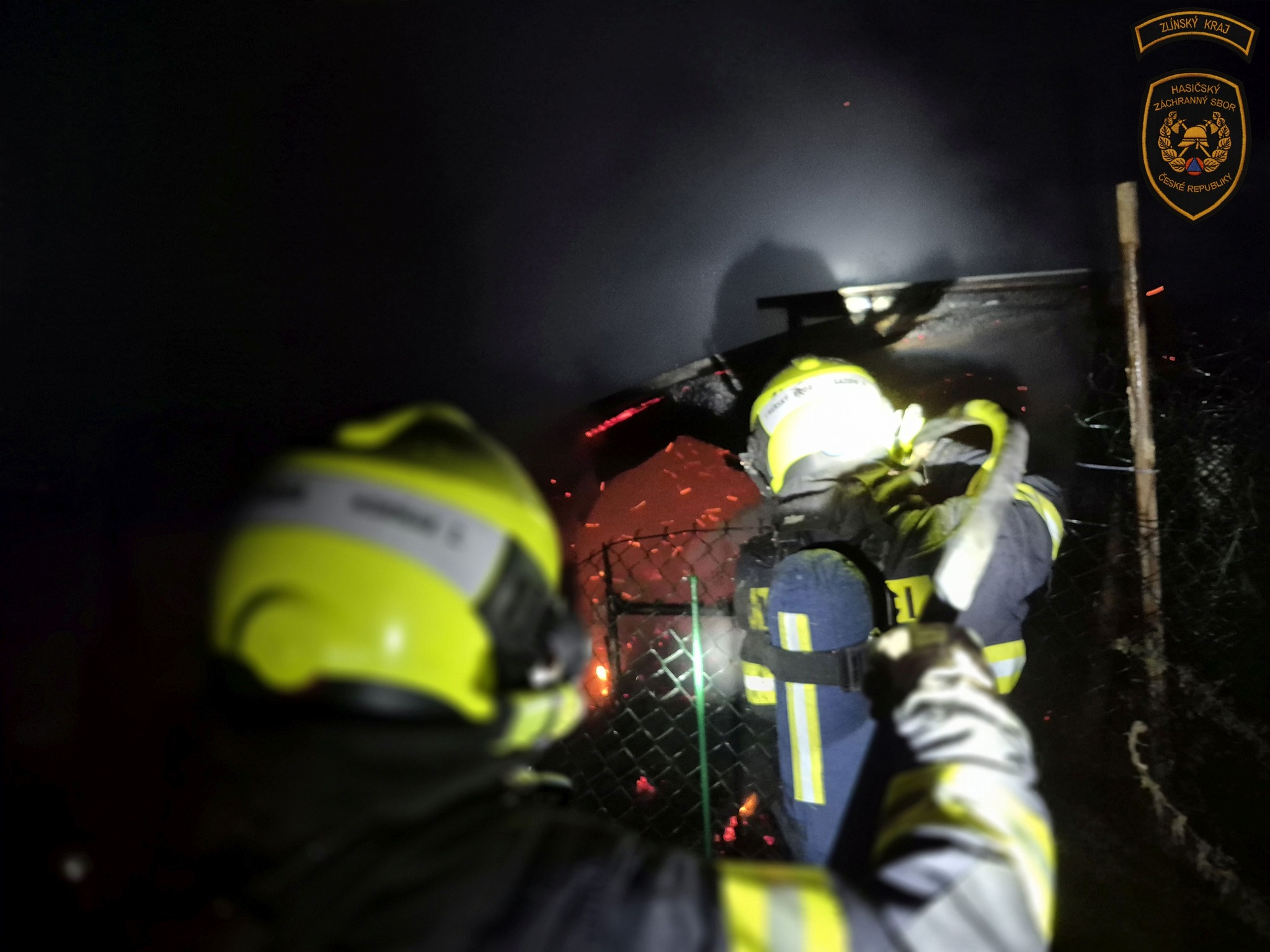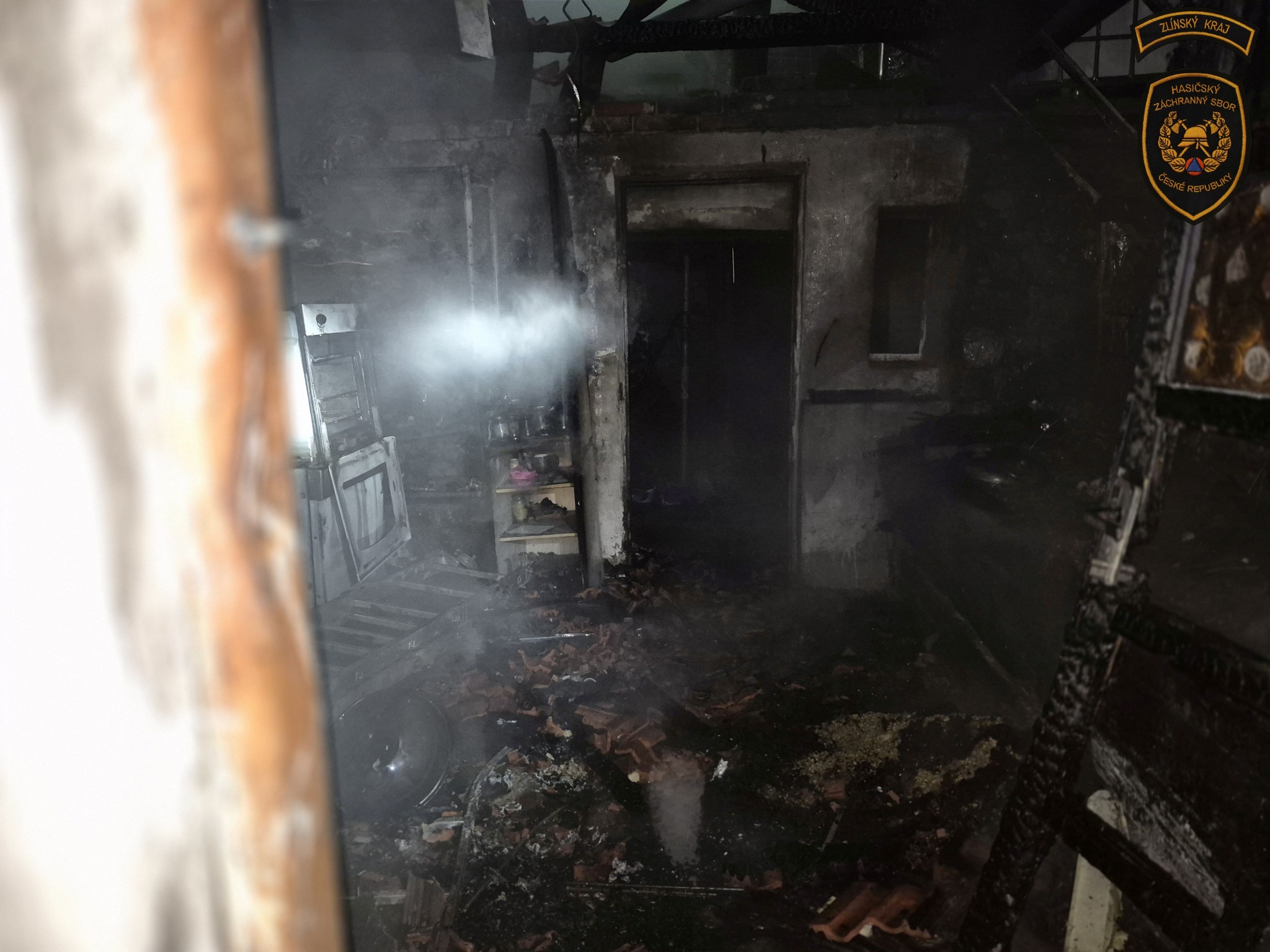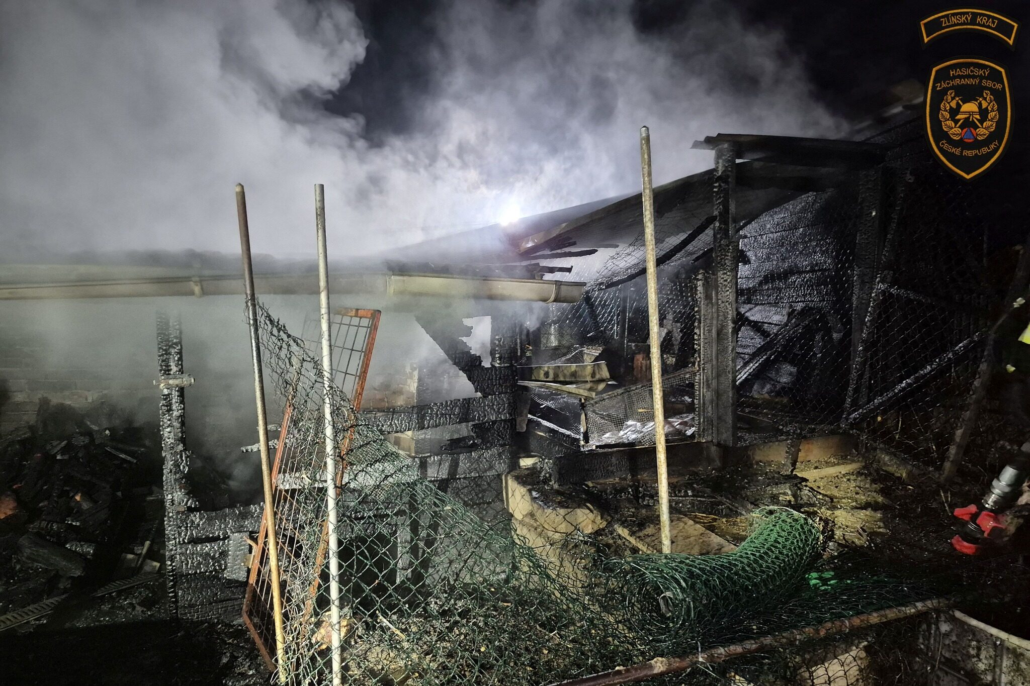 Při požáru v Újezdci se zranila jedna osoba. Do nemocnice ji musel transportovat vrtulník. Foto: HZS Zlínského kraje