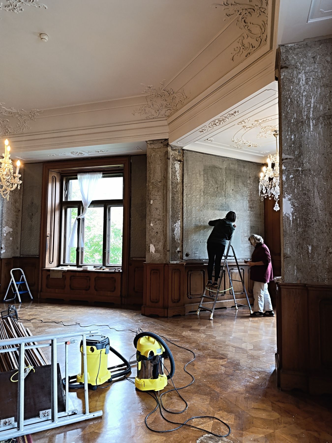 Restaurátorské práce v Dámském salonu. Foto: Zoo Zlín