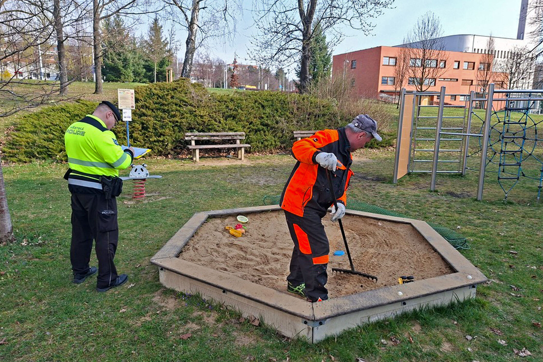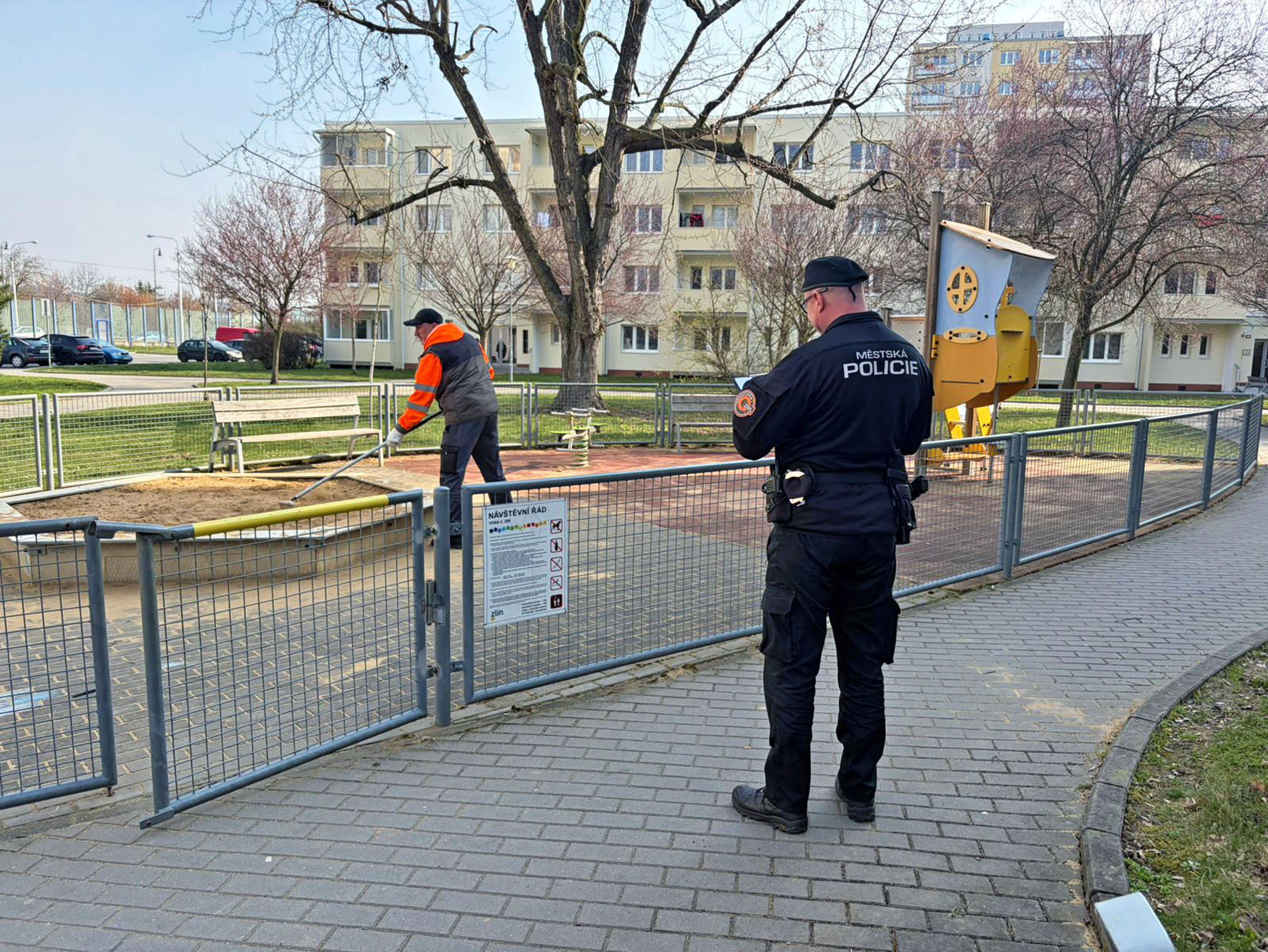 Fotogalerie - Zlínští strážníci kontrolovali hřiště kvůli jehlám. Tentokrát nic nenašli, riziko však zůstává