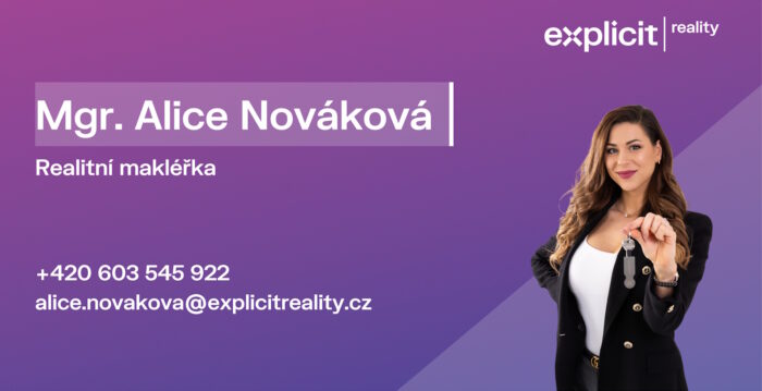 Realitní makléřka / tel.: +420 603 545 922 / e-mail: alice.novakova@explicitreality.cz