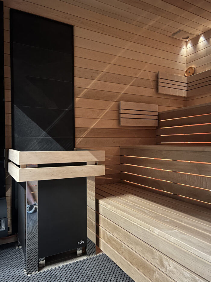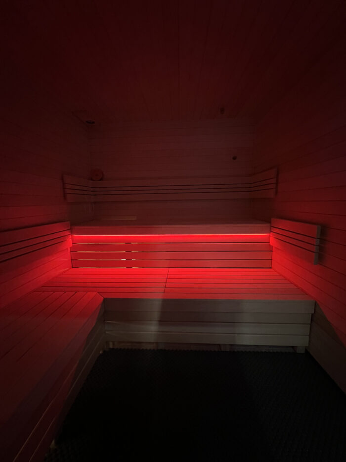 Prostory sauny zahrnují finskou a bio saunu s elektrickým topidlem, ochlazovací bazének, mokrou odpočívárnu s vyhřívanými lavicemi, tichou odpočívárnu s dřevěnými lehátky, šatny, skříňky, převlékací kabiny, fény a recepci. Provoz je rozdělen podle dnů: v pondělí, pátek, sobotu a neděli je sauna společná, v úterý a ve čtvrtek je určena mužům a ve středu ženám.