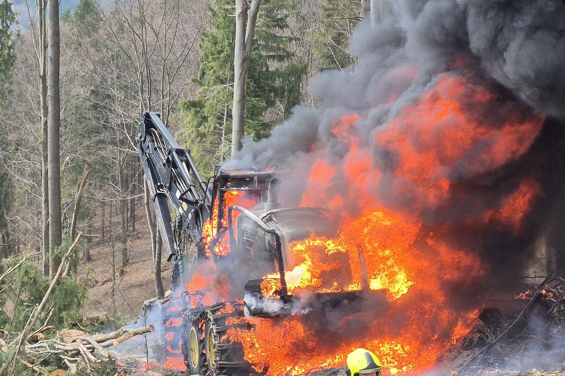 ZDĚCHOV – Požár lesnického stroje zaměstnal ve středu odpoledne hasiče nedaleko Zděchova na Vsetínsku.…