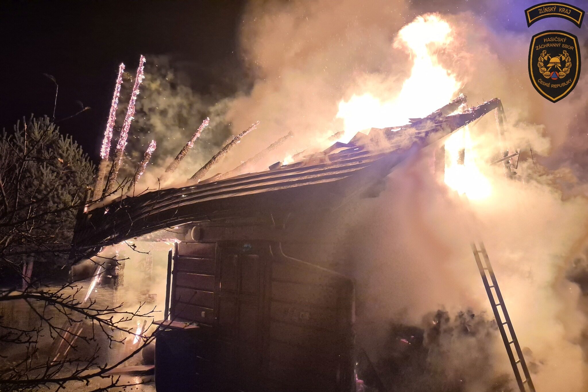 VSETÍNSKO – V sobotu nad ránem zasahovaly profesionální i dobrovolné jednotky u rozsáhlého požáru v obci Oznice na Vsetínsku. Oheň zachvátil hospodářský objekt, naštěstí bez zranění.