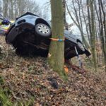 K nehodě došlo před devátou hodinou ranní. Automobil po vyjetí z vozovky nekontrolovaně sjel ze svahu, během jízdy se převrátil a zůstal zaklíněný mezi stromy. Situace byla o to nebezpečnější, že se vůz zastavil ve strmém svahu a hrozilo, že by se mohl zřítit z kopce dolů.