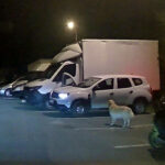 Poté, co zastavil, vystoupil řidič s lahví v ruce z vozidla a následně zamířil za automobil. Brzy bylo zřejmé proč.