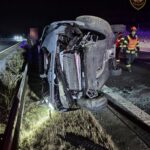 Velitel zásahu po příjezdu potvrdil, že se jednalo o nehodu vozidla, které skončilo převrácené na boku a blokovalo levý jízdní pruh.