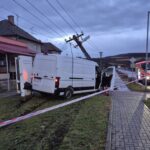K nehodě došlo v obci Doubravy. Osobní auto se zde střetlo s dodávkou, která po nárazu skončila mimo vozovku. Při tom ještě přerazila betonový sloup elektrického vedení.