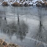 „Vidíš, tady jsou ještě rodiny divokých kachen, ale čím dál více mají na vodě méně místa, zítra už to budou mít ještě hodně složitější, toho ledu po velmi chladné noci určitě přibude,“ ukazuje tatínek malému potomkovi přímo z mostu.