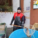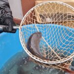 „Začali jsme přesně týden před Štědrým dnem, budeme tu do 23. prosince. Kapry máme z Hodonína, ceny držíme na loňské úrovni. Práce je to samozřejmě náročná, ale protože to patří k Vánocům, tak to děláme rádi. A já, až tu skončím, budu jíst kapra v kuse celé dva dny až do Štěpána,“ směje se David, šéf téhle partičky, s podběrákem v ruce.