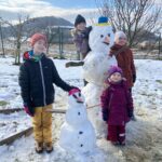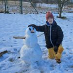 „Udělat pořádného sněhuláka není nic lehkého, ale jedna výhoda tu byla, jak potál sníh, tak se dobře lepil. Jenže ho už není dostatek, a tak mají naši sněhoví pánové trošku bíločerné provedení. Nosy mají tradičně mrkvově oranžové, ale knoflíky hodně originální, protože jsou z červených bobulí, které jsme našli na keři na zahradě,“ přidává podrobnosti další stavitelka Eliška Pšenicová.